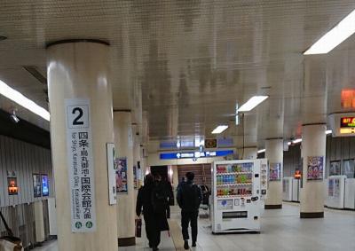 京都観光に便利な京都市営地下鉄烏丸線です。電車の本数も多くそれほど待たずに乗れました。時間も正確ですし、特に地下鉄は寒さも防ぐことができるのがいいです。多少歩くことになっても、バス停で寒い中立って待つより電車を利用しました。