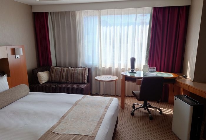 アミュプラザくまもとに併設されたホテルで駅近くアクセス良好です。ホテルロビーは9階で、客室はそれ以上の階数になるので眺望も楽しめます。今回は線路側でしたので電車の往来を見ることができました。