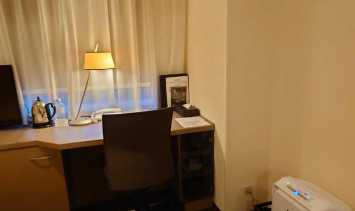 部屋の広さ等問題なく、ミネラルウォータもありました。コーヒー類はロビー階に置いてありました。