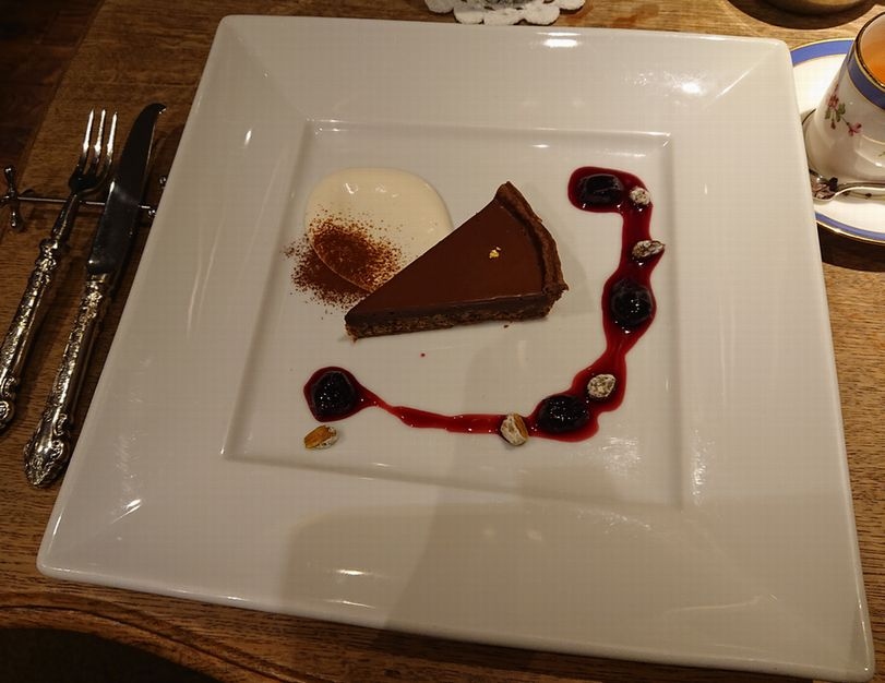 濃厚で滑らかなチョコレートタルト、一緒にいただいたチョコレートローズティー、香りもよく美味しかったです。