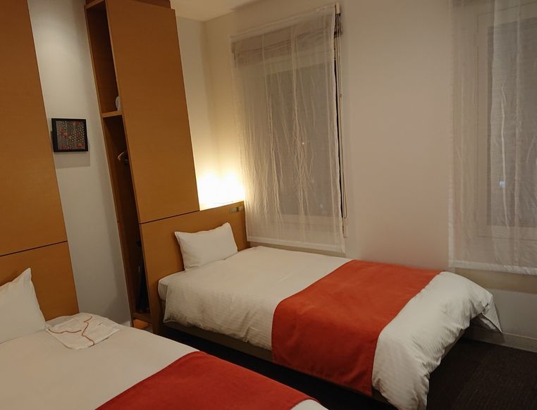 京都駅新幹線改札口に近くとても便利なホテルです。建物が細長く端の方だとエレベーター降りてからちょっと歩きます。予約時にエレベーター近くを希望したほうが良いかもしれません。部屋はコンパクトなツインを一人で利用しました。冷蔵庫は奥行きがなく薄く物はあまり入りません。二人で利用するにはちょっときつそうな部屋ですが、きれいですし一人ですから問題はなかったです。