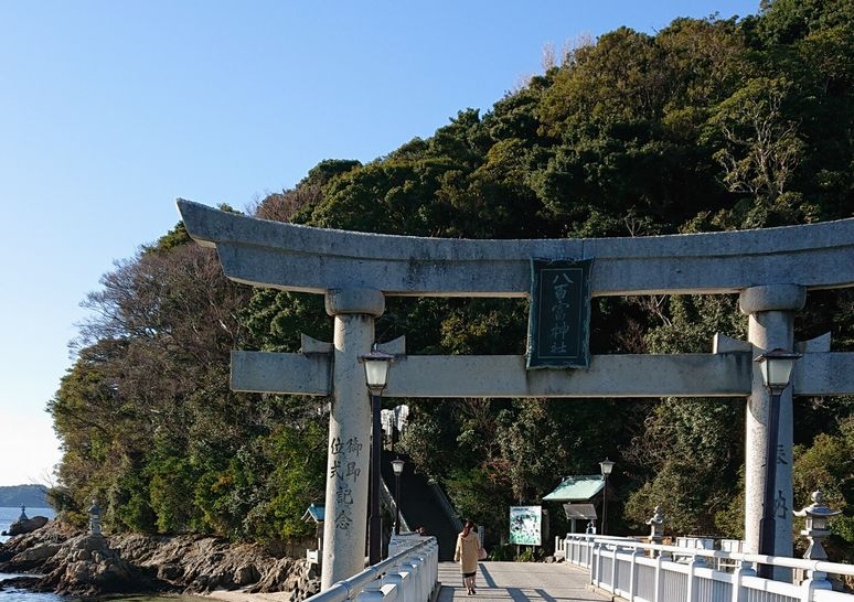三河湾国定公園内にある竹島には5つの神社がありそのうちのひとつです。島に入ると石段があり、意外と段数がありいい運動になりました。上がった先に手水舎、近くには宇賀神社がありその先に八百富神社がありました。開運、縁結び、安産などに御利益があるそうです。境内は参拝者は少なく静かな雰囲気の中参拝ができました。
