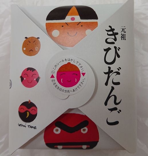 岡山の定番土産きびだんごは各所で買うことができ種類も豊富です。今回はこちらの「元祖きびだんご」をお土産として購入しました。可愛い絵柄の箱入りで一つずつ紙に包まれていて食べやすいです。お値段もお手頃でお土産としてお勧めです。