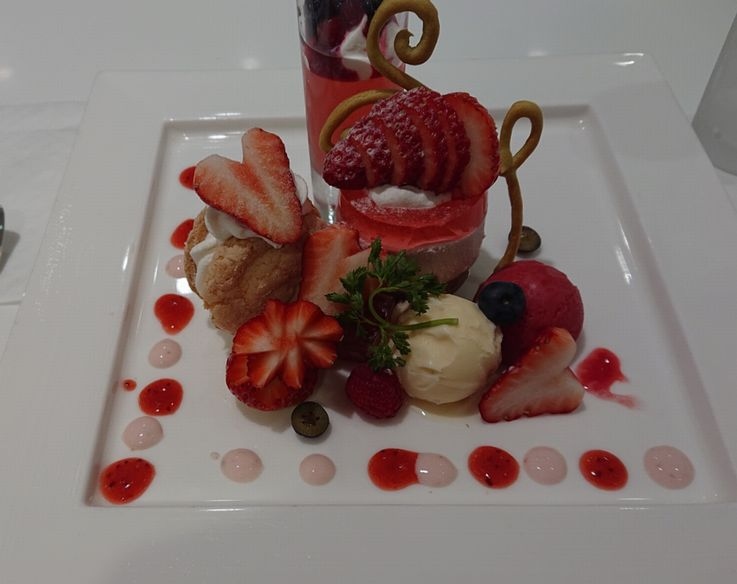 JR名古屋タカシマヤの4階にあります。平日のお昼前、それほど待たずに席に着けました。お店の前には椅子が用意されていて座って待つことができます。店内は白を基調にした明るい雰囲気でした。「国産苺とベリーのプレート」をいただきました。ゼリーやムースなどがいちごと共に楽しめ美味しかったです。
