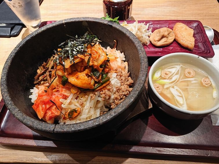 新丸ビル5階にある韓国料理店です。お昼の時間帯でしたが待たずに席に着けました。ほぼ席は埋まっていました。石焼ビビンパ定食、普通においしかったです。ご飯の量が多く、ご飯に対して具材が少ないような気がしました。
