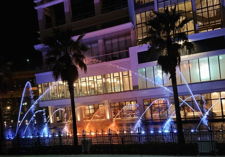神戸ハーバーランドumieから宿泊先ホテルへ戻る途中、たまたま見学することができました。フランスのベルサイユ宮殿の噴水ショーを再現したもので、色とりどりにライトアップされた噴水はきれいで、また迫力もありました。無料で見学できました。