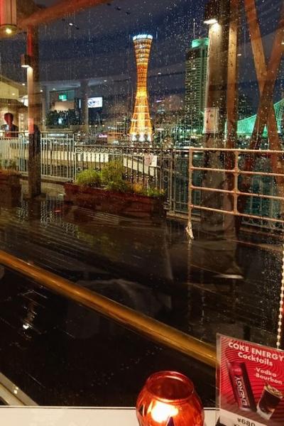 神戸ハーバーランドumie3階にあるお店です。窓際の席がちょうどひとつ空いていたのでそちらに案内されました。ポートタワーなど夜景を楽しめますが、雨が降っていたのが残念でした。テラス席もあるので天気が良ければそちらも気持ちよさそうです。メニューは様々なものがあり、お子様メニューもあるので家族でもよさそうです。
