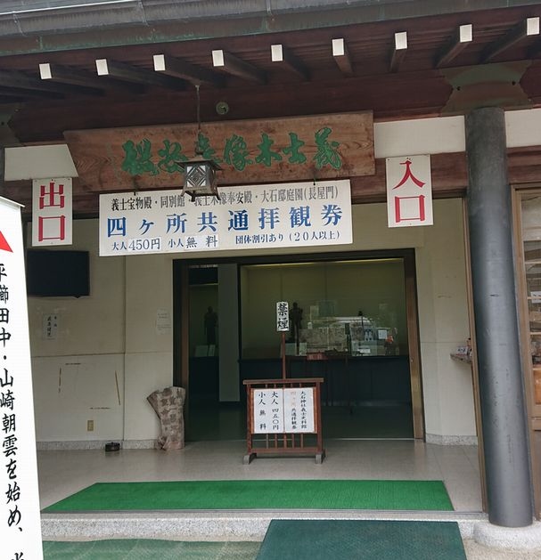 大石神社参拝後に義士宝物館・義士宝物館別館・義士木像奉安殿・大石邸庭園(長屋門)の四か所共通拝観券を購入して見学しました。