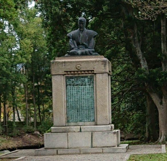大石神社を参拝した後に赤穂城跡に向かう途中にニノ門跡がありその近くに銅像がありました。道路からはちょっと奥まったところにありましたが、説明板が道路沿いにあったのですぐにわかりました。大石内蔵助も影響を受けたとされる儒学者だそうです。
