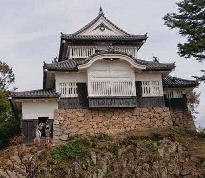 城見橋公園駐車場に車を停めてシャトルバスでふいご峠駐車場まで向かいました。シャトルバスは15分間隔で出ているのでほとんど待つことなく乗れました。ふいご峠駐車場からは歩きました。山道を上がり階段がとてもつらく、運動不足の体にはとても堪えました。頂上は風が心地よく、見晴らしもよかったです。素晴らしい石垣、小さいながらも凛とした佇まいの天守、辛い思いをして上ってきたかいがありました。天守前に人だかりができていたので覗いたら、猫ちゃんがお座布団の上で静かにお休み中でした。