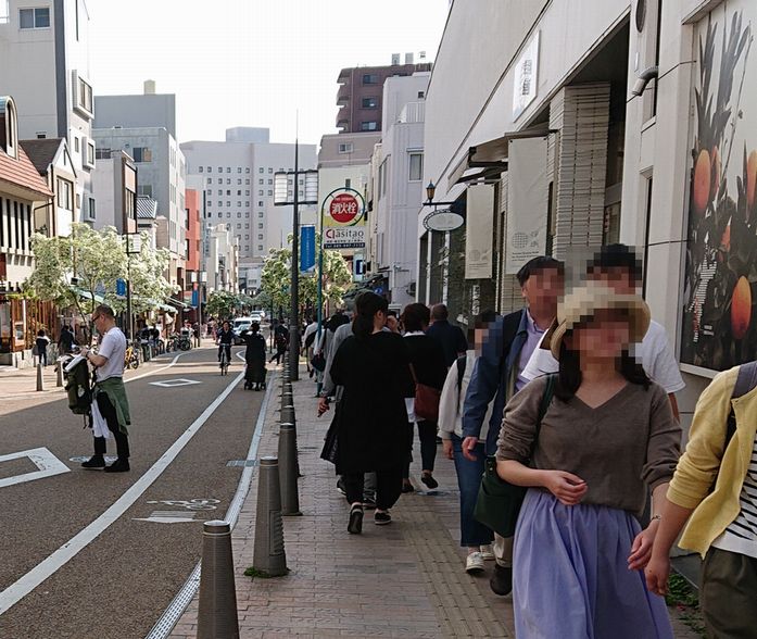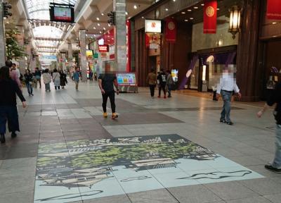 大街道アーケードの北端から松山城へ向かうロープウェイ乗り場までの商店街です。こちらにはえひめ笑顔の観光物産館があり、お土産の調達には便利ですし、蛇口から出るみかんジュースを飲むことができます。飲食店が多く、お昼時ということもあり、何軒かある鯛めし屋さんはどこも行列ができていました。
