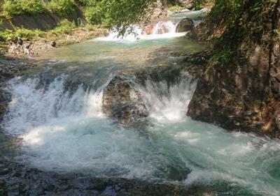 急遽お盆の時期に泊るところを探し空いていたこちらに宿泊しました。旅館前の道は狭く、駐車場も狭いので、車のキーを預けて離れた駐車場に移動してくれました。渓流側のテラス付きの部屋でしたが、眺望はそれ程ではありませんでした。お料理は山里会席(特選)にしました。ちょっと期待していたのですが、味付けが好みではなかったです。種類は多く量もありました。