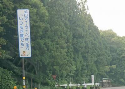 国道353号線を四万温泉へ向かう途中にありました。まず、最初に「この先メロディーライン」、少し走行すると「メロディーラインはじまり」の案内板があるのでわかると思います。時速40㎞で走行すると、確かに「千と千尋の神隠し」の主題歌「いつも何度でも」が聞こえました。