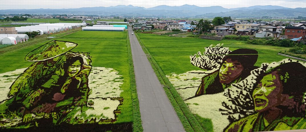 田舎館村の田んぼアートは第一会場と第二会場があり、第二会場は石を使ったアートもありました。色んな種類の稲を使って描かれている巨大なアートはとても見応えありました。どちらも展望台に行くのに300円かかりますが、一度は見てみる価値はあると思います。