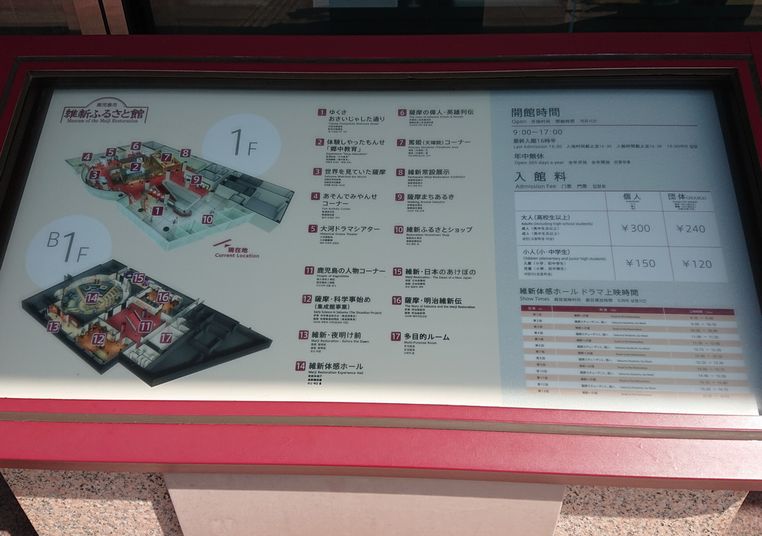 幕末の薩摩と明治維新が学べる移設で、入館料は300円でした。大人も子供も楽しめる展示内容でした。地下のシアターでドラマが上映され、こちらもなかなか面白かったです。2本で約1時間かかりますのである程度の時間は必要です。ツアーで来られている人も多く混雑していました。駐車場は無料のコインパーキングがあり、3時間停められました。