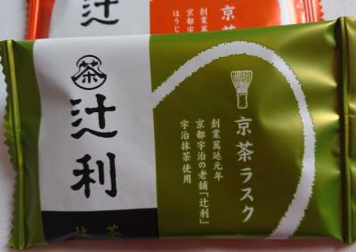 創業萬延元年の宇治茶の老舗店で、こちらの抹茶とほうじ茶味のラスクをいただきました。濃厚な抹茶チョコレートと芳醇なほうじ茶の香り漂うチョコレート、どちらもたっぷりとサクサクのフランスパンにコーティングされていて美味しく頂きました。