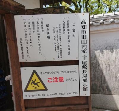 高知城から徒歩でこちらに向かいました。ホテルの敷地内にあり、門をくぐり正面にホテル、右手方面に長屋があり、受付もなく人もいませんでした。入口にスリッパが置いてありましたので履き替えて建物内(1・2階)を見学しました。庶民の生活用具や和船などを見ることができました。建物内は写真撮影禁止でした。