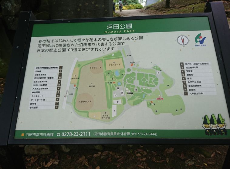 関越自動車道沼田ICから車で15分くらいのところにある沼田公園内にあります。沼田市観光案内所がある無料の駐車場に車を停め、沼田城址など公園内を見学しました。公園内の「旧生方家住宅」の近くにありました。ひっそりと佇む洋館は移築工事のため見学はできませんでした。