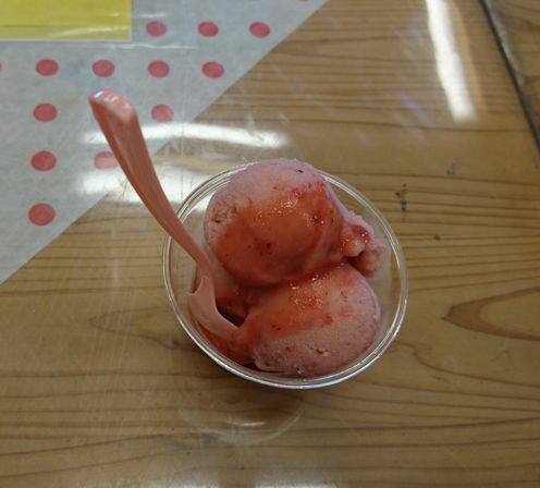 東北自動車道鹿沼ICから20分ぐらいのところにある「まちの駅 新・鹿沼宿」内にあります。鹿沼和牛を使用したカレーやコロッケ、ピザなどがありました。季節商品でとちおとめのソースをかけたかき氷やジュースやソフトなどもありましたが、とちおとめジェラードをいただきました。自然ないちごの甘酸っぱさが感じられ美味しかったです。買い物帰りの一休みに便利です。