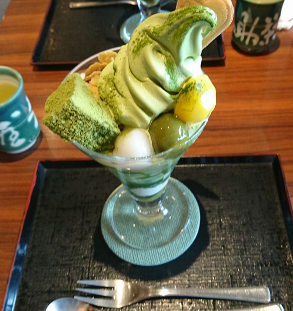JR新横浜駅に直結している「キュービックプラザ新横浜」の10階のレストラン街にある店舗です。平日の3時ごろ満席でしたので少し待ちましたが、椅子が用意されているので座って待てました。抹茶パフェをいただきました。たっぷりの抹茶ソフトに抹茶わらびなど美味しかったです。