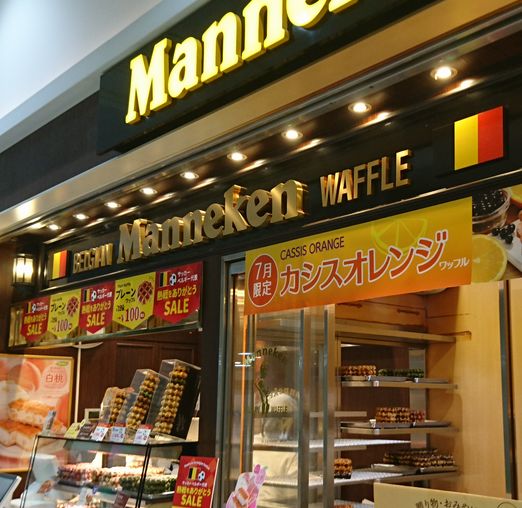 JR三ノ宮駅改札口近くにある店舗です。こちらのベルギーワッフルは種類も豊富ですし、お手頃価格なのでちょっとした手土産にもお勧めです。月限定商品もあるので毎月楽しみです。訪れた日はワールドカップでのベルギー選手の応援と言うことで、プレーン100円セールを実施していました。
