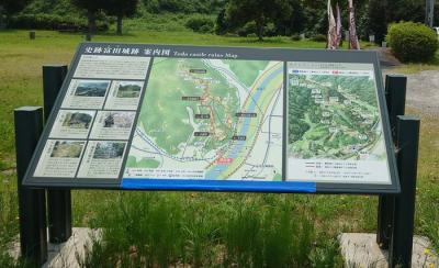 富田城跡の案内板尼子氏の巨大な山城、五大山城のひとつ(他は春日山城・七...