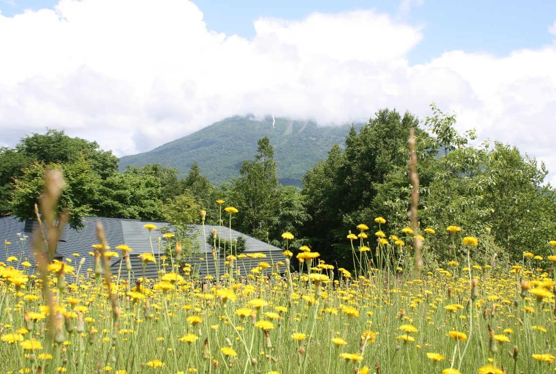 目の前に広がる美しい森、お花畑(季節によって)を楽しめるスポットでもあります。