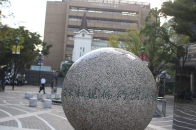 日米和親条約締結の碑と書かれた丸い記念碑。