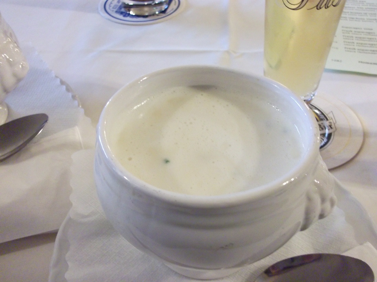 お昼に入ったのですが、お腹があまり空いていなかったので、スープと小さいサラダとビールをいただきました。
