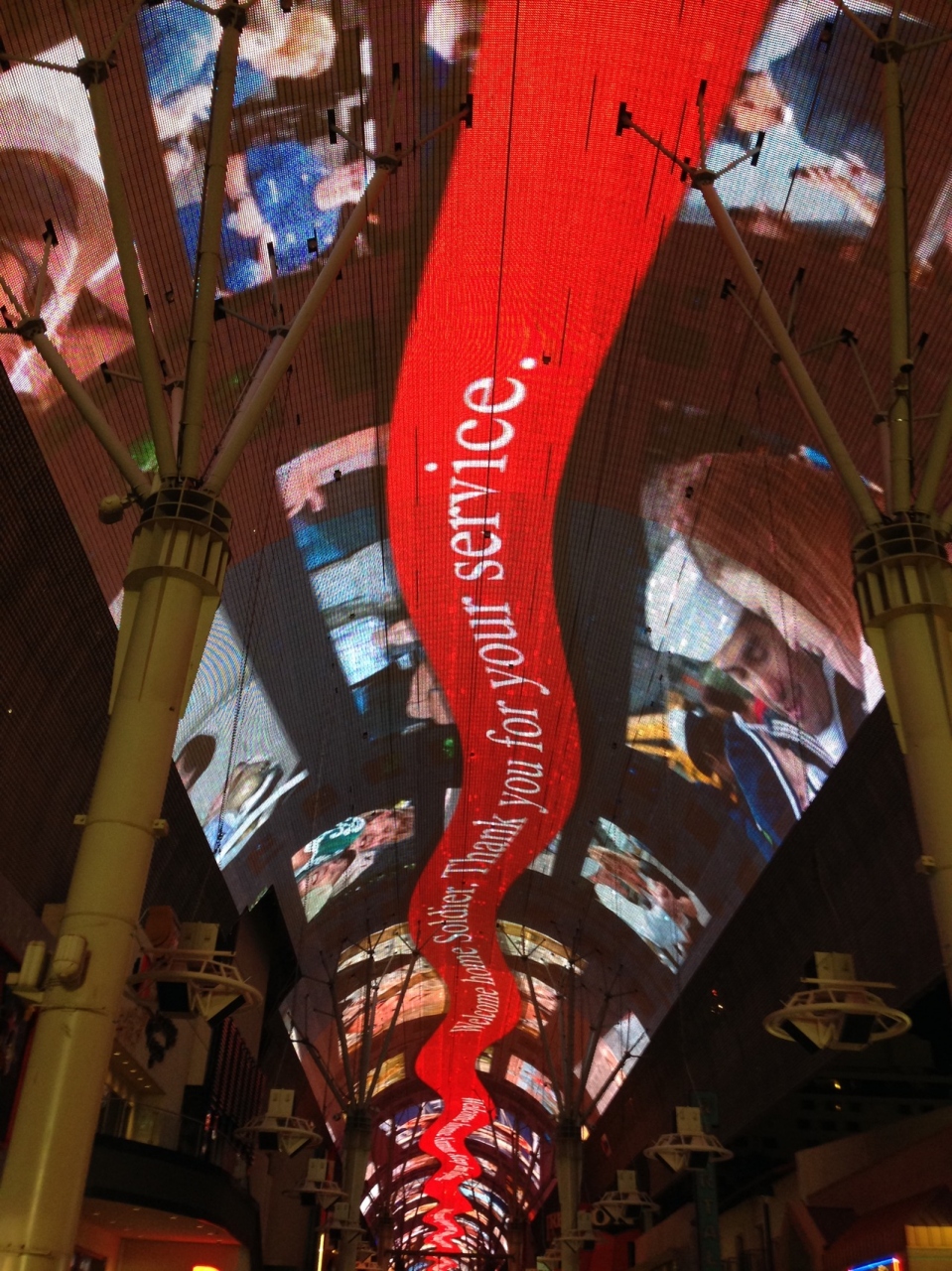 ダウンタウンのフリーモントストリート名物、ストリップからもバス一本なので便利です。アーケード全体に電飾がしてあり、