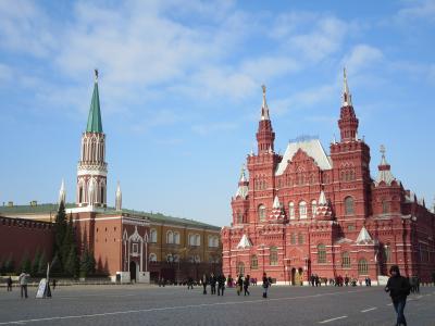 たくさんのたまねぎの塔が美しい聖ワシリー寺院、赤い色が印象的な国立歴史博物館、国立の美しいグム百貨店、レーニン廟などに囲まれています。
