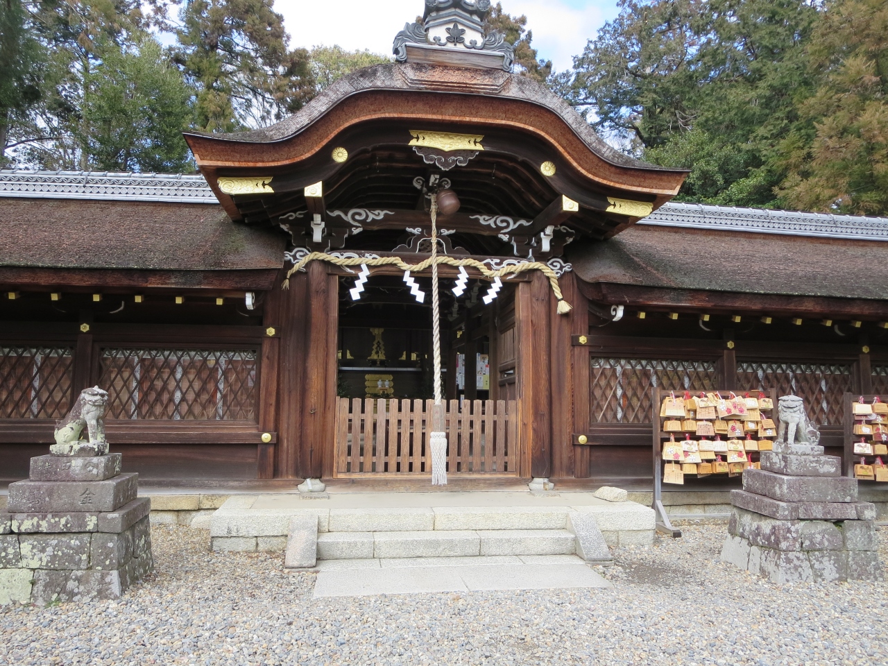 ご祭神は、大山咋神(おおやまぐいのかみ)と、市杵島姫命(いちきしまひめのみこと)です。