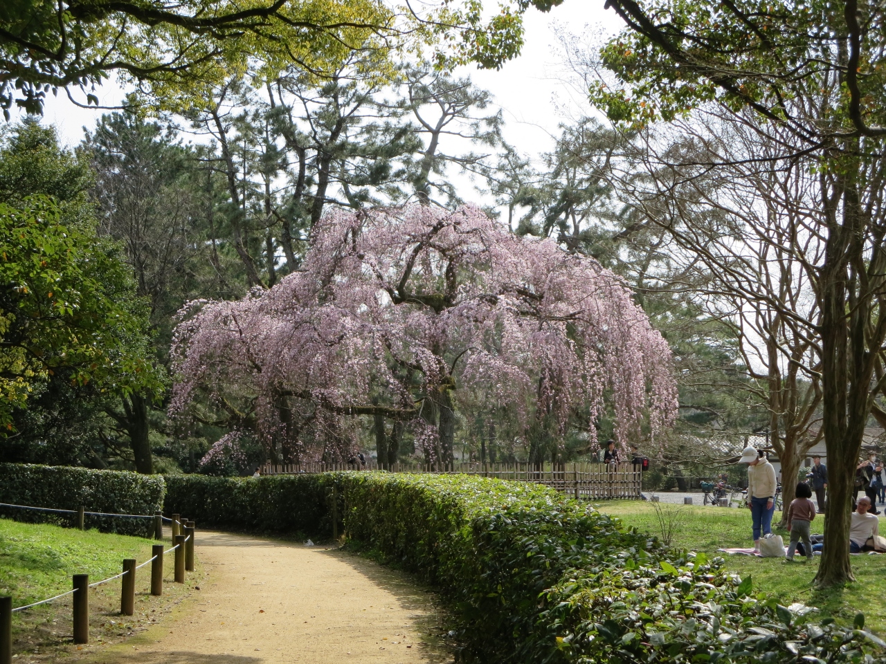 賀陽宮邸跡の辺りに、とても大きな枝垂れ桜が1本あり、綺麗に咲いていました。
