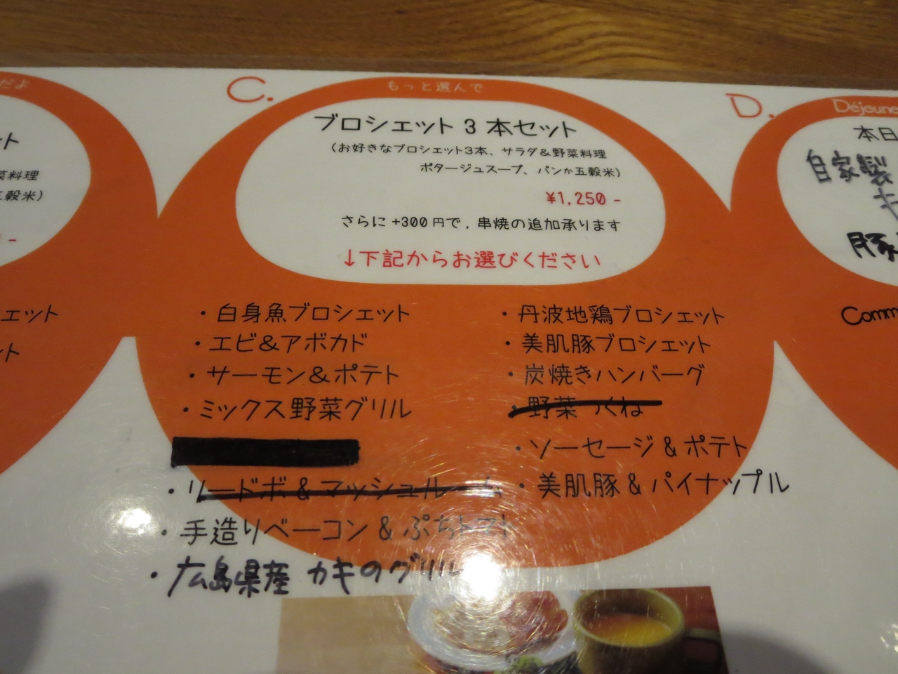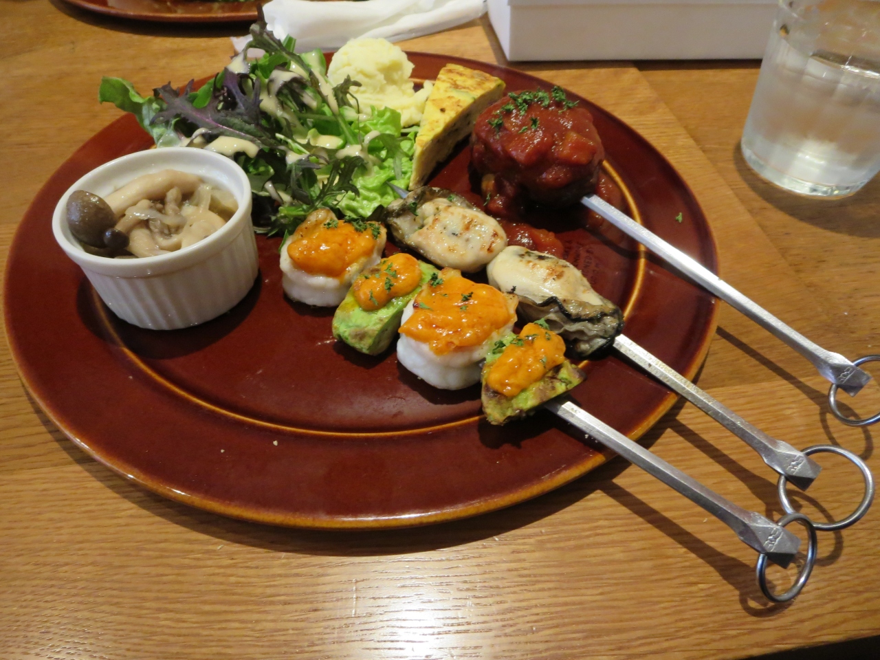 私は、3本の串焼きのメニューをたのみました。