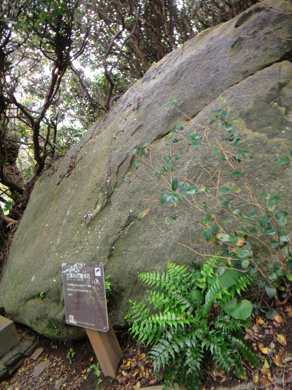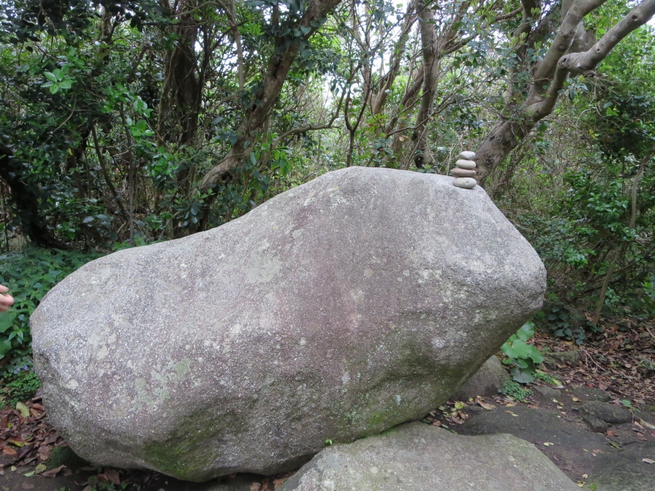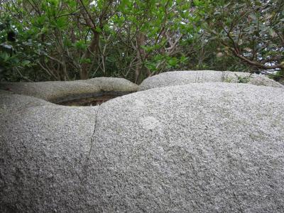 親孝行の度合いをはかる「ゆるぎ石」は、ものすごく大きな岩に、一点に力をこめて押すのですが、なかなか動きません。