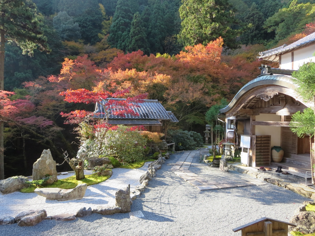 紅葉の季節には、本堂から山の方を見ると、とても美しい景色を楽しめます。
