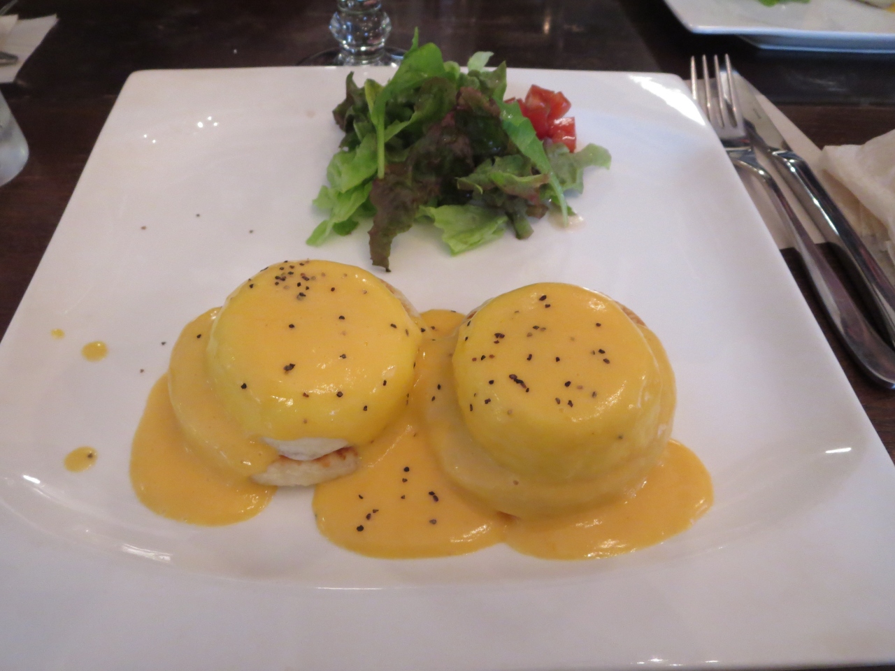エッグベネディクトは、クランペットがモチモチで、卵との相性抜群です!