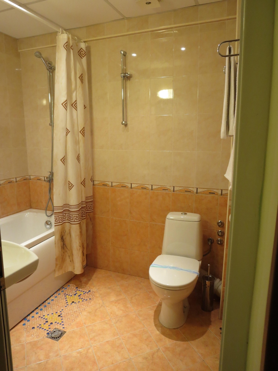 上の階の人が、あふれさせたようで、バスタブ上の天井から、水がもってきて、フロントに電話する事態になりました。- 旅行時期