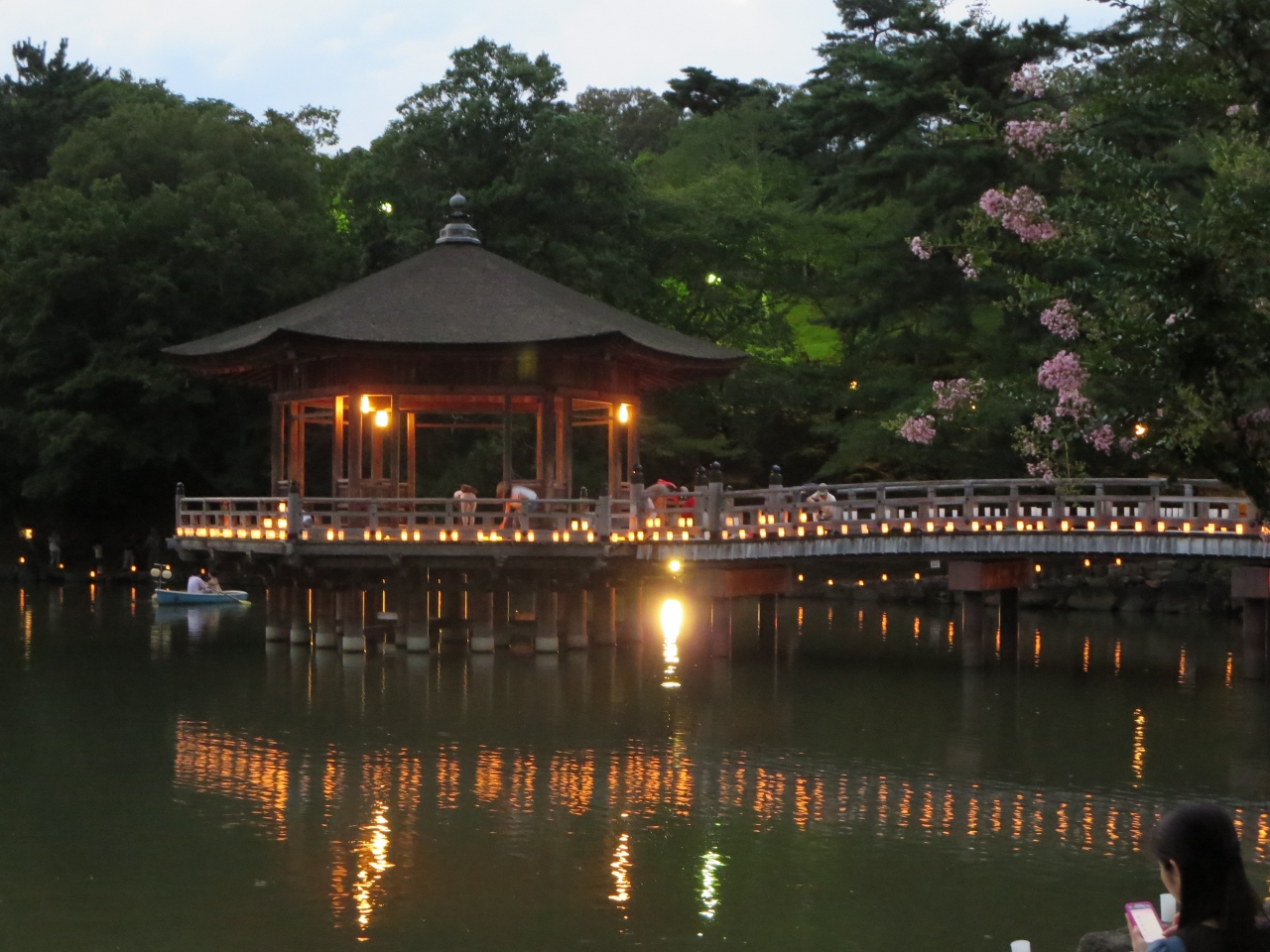 2014年から、春日大社の参道にある万葉植物園で、「イルミ奈~ら」が始まりました。9月30日まで開催されています。(8月14,15日はお休み)