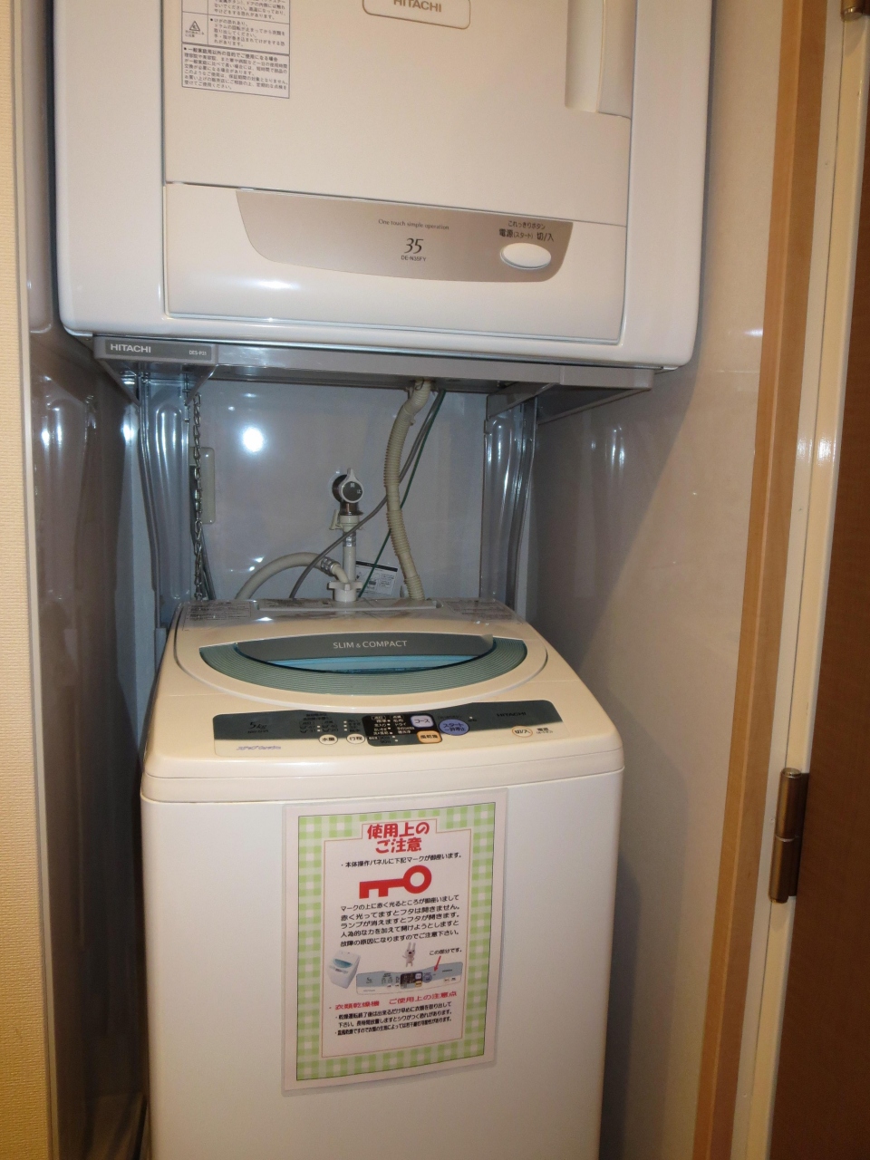 シングルといっても、ベッドはセミダブルサイズで、部屋には大きな冷蔵庫、電子レンジ、乾燥機つきの洗濯機が備えてあります。