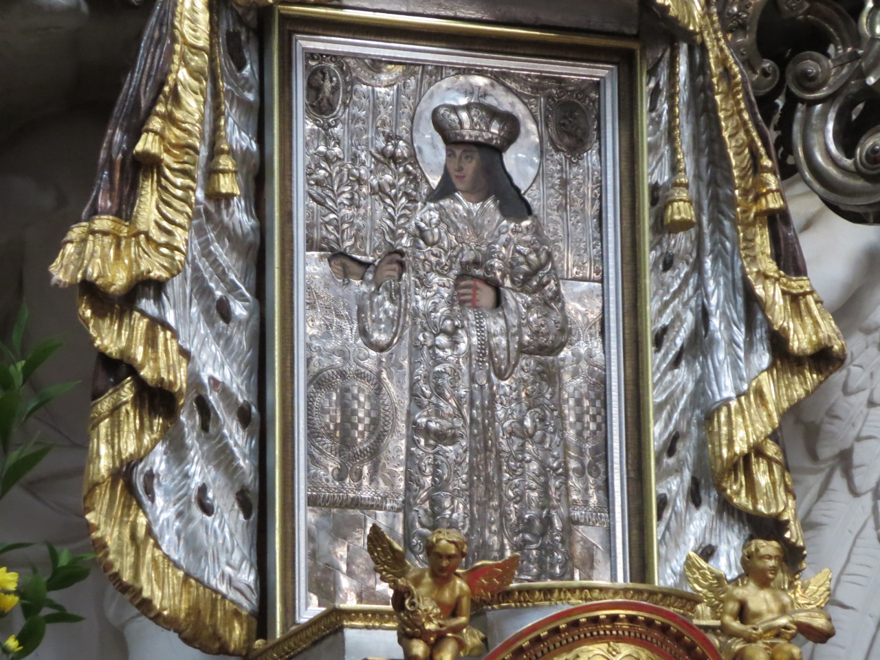 聖カジミエルのイコンは、銀色に輝いていて、手が3本あります。