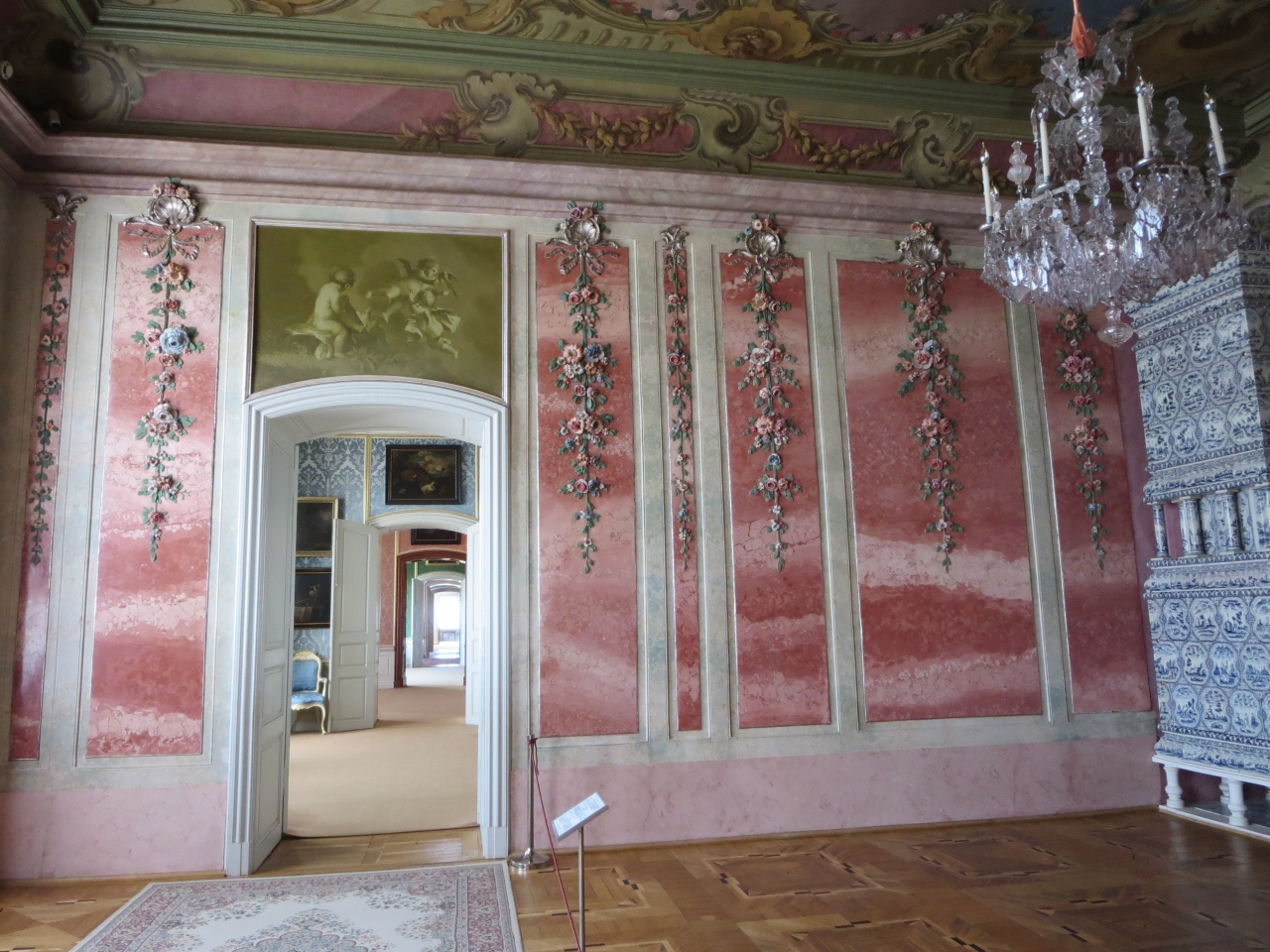 バラの間は、美しいバラ色の人口大理石の壁に、バラのレリーフがかかっていて、本当に美しいです。