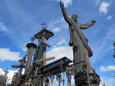 その階段を登ると、白亜の3つの十字架がそびえたっています。