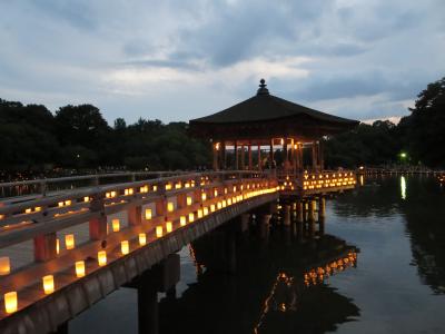 2014年から、春日大社の参道にある万葉植物園で、「イルミ奈~ら」が始まりました。9月30日まで開催されています。(8月14,15日はお休み)
