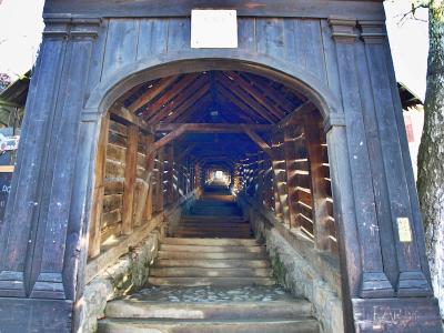 城砦の中を登っていくと、屋根のある木造の階段が現れる。