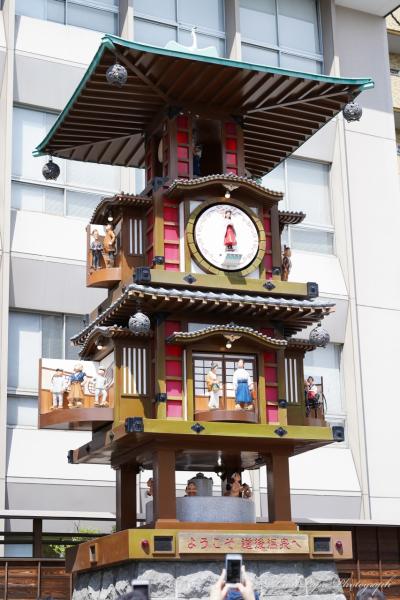 からくり時計の一番下は、温泉。00ちょうどになると、動き出します。