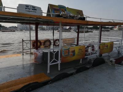 ワットポーを見てからから少し歩くと船着き場があり、対岸のワットアルンへ行ける便利な船です。特に時間は決まっていなくて集まったら出発する感じでした。