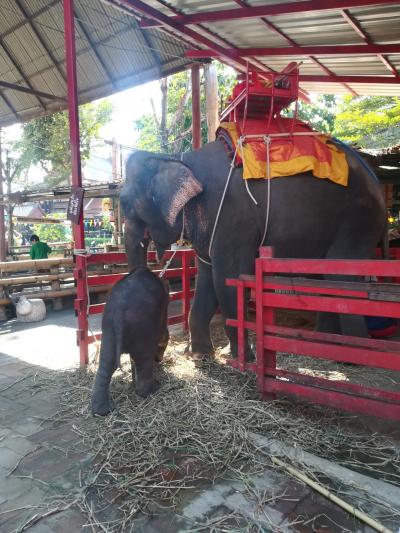 ツアーとは別料金で10分200バーツです。わりときれいな施設で象もきれいに飾られ、平坦な道を優雅に歩きます。