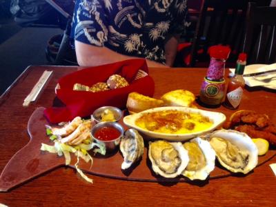 生ガキ、えびのカクテル、カラマリ、ホタテのグラタンなど食べたかったものがズラリで大満足!いかにもアメリカの港町っぽいレストランでした。- 旅行時期