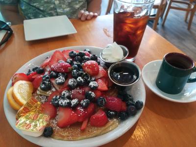 ランチは済ませた後だったので、2人でパンケーキをシェア。いちごとベリー乗せでちょうどいいおやつタイムに。近くのオノシーフードも行こうと思ったら、定休日でした(残念)レナーズベーカリーも徒歩圏内なのではしごしました。- 旅行時期